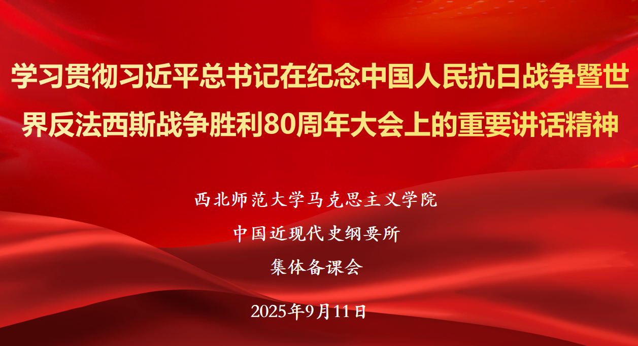 9月11日,德赢vwin体育官网登录中国近现代史纲要所党支部在召开集体备课会,专题学习习近平总书记在纪念中国人民抗日战争暨世界反法西斯战争胜利80周年大会上的重要讲话精神。中国近现代史纲要所所长闪兰靖教授主持集体备课会,纲要所全体教师参加。