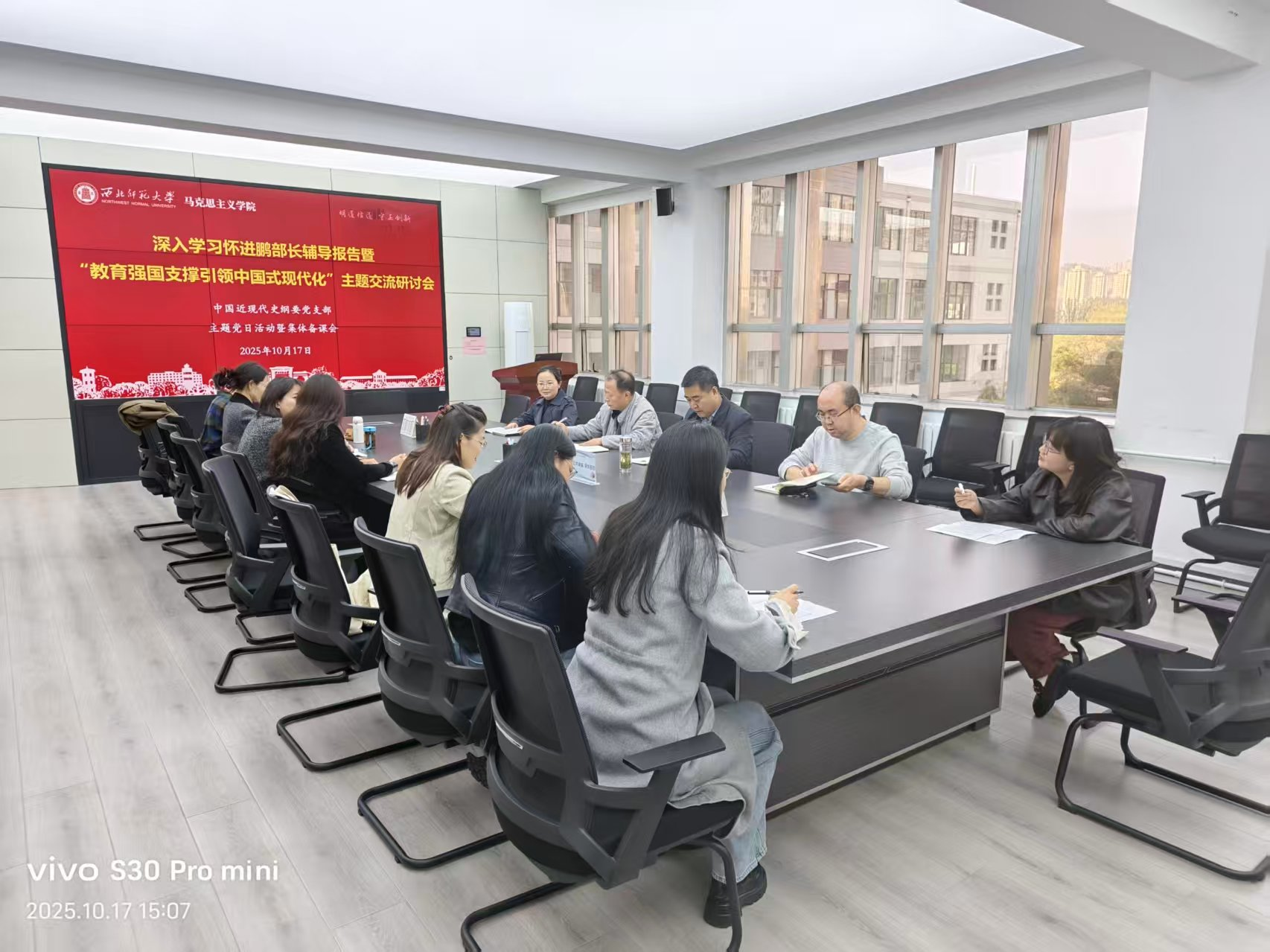 10月17日下午,德赢vwin体育官网登录中国近现代史纲要所党支部在田家炳教育书院410会议室开展了“教育强国支撑引领中国式现代化”主题研讨交流活动,深入学习教育部部长怀进鹏的辅导报告精神。支部书记闪兰靖教授主持研讨,全体党员参加。